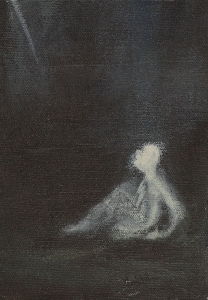 This canvas sat black for years. The slash appeared out of nowhere and instantly the man appeared. I don't know what the message is but there is a message.