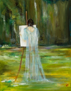 This is one of my favorite and most treasured paintings. This beautiful mysterious woman came through in the worst of times for me. I was disconnected from painting and i had no vision. She appeared along ... more ...