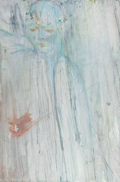 A soul essence painting of my childhood. She came through and doesn't want to talk...save for the finger. She has a sense of humor and is working on how to have boundaries. She's defensive and ... more ...